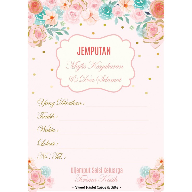 E m m a jemputan ke majlis aqiqah cukur jambul. Kami juga menyediakan kad jemputan bagi . Kad jemputan doa selamat, aqiqah atau tahlil. Hand painted botanical card with branch and flowers.